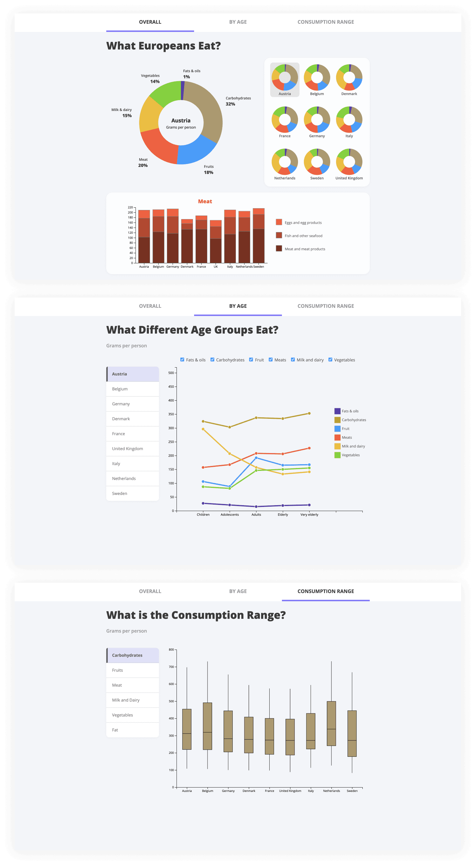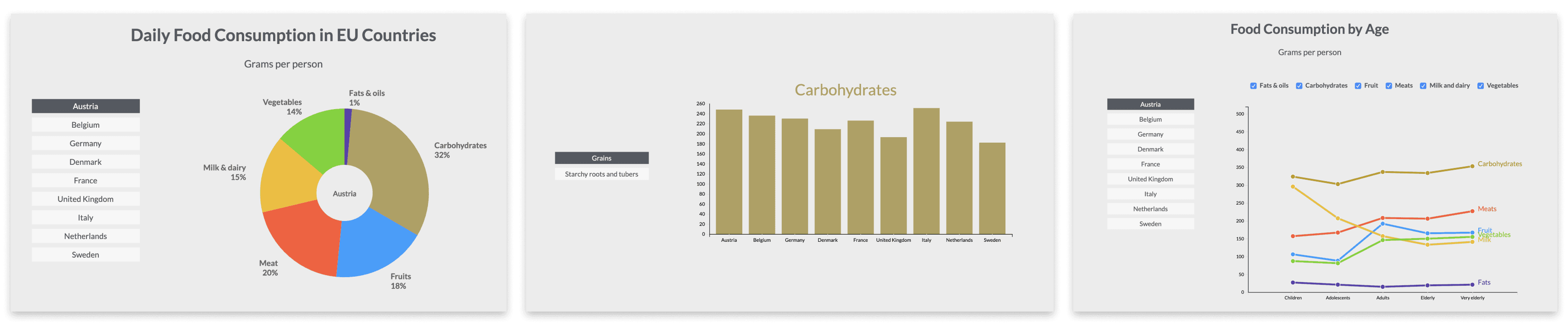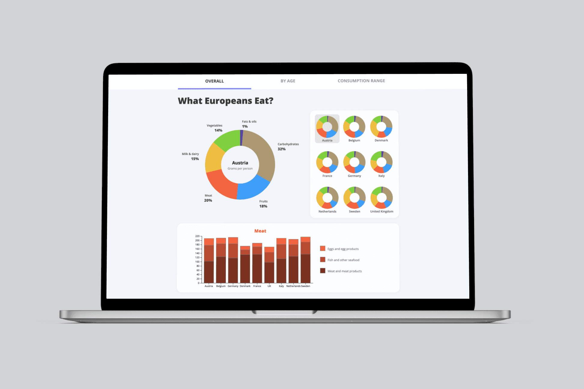 A fully coded interactive dashboard used to communicate European food consumption patterns